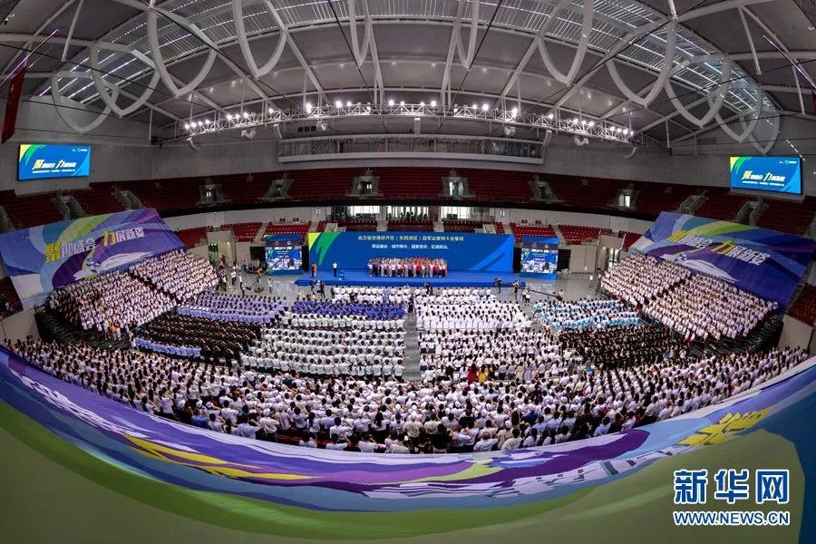 武漢五環(huán)體育中心是2019年第七屆世界軍人運(yùn)動(dòng)會(huì)主要比賽場館之一,將承接軍運(yùn)會(huì)田徑、乒乓球和水上救生等三項(xiàng)賽事。包含3萬座體育場、8000座體育館和1000座游泳館,三大類場館以體育場為核心,兩館分居兩翼,呈品字形分布,狀如鳳凰展翅,頗具荊楚風(fēng)韻。