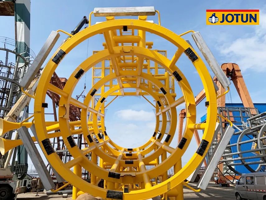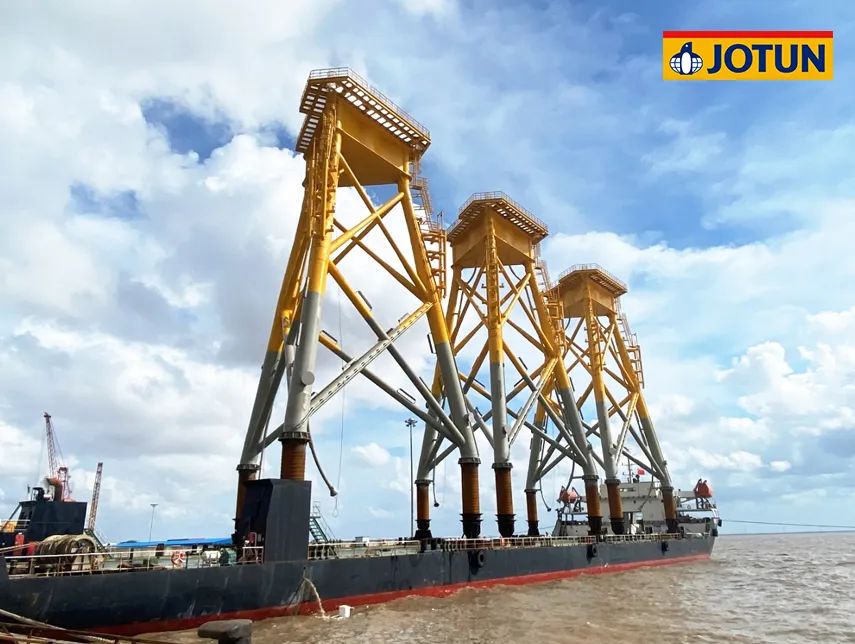 項目總投資102.86億元,規(guī)劃容量500兆瓦,水深范圍41-46米,離岸距離55公里。67臺海上風(fēng)機(jī)矗立在水深40多米的海里,風(fēng)機(jī)基礎(chǔ)結(jié)構(gòu)采用導(dǎo)管架形式,佐敦為整個項目的導(dǎo)管架涂裝提供了超過700,000升防腐涂料。