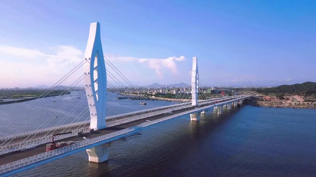 廣東汕頭中砂特大橋為雙塔中央雙索面鋼箱梁斜拉橋,是第三屆亞洲青年運動會關鍵性控制工程,也是汕頭市中山東路重點配套工程。大橋雙塔呈白海豚造型,是汕頭東海岸新城又一座標志性景觀建筑。