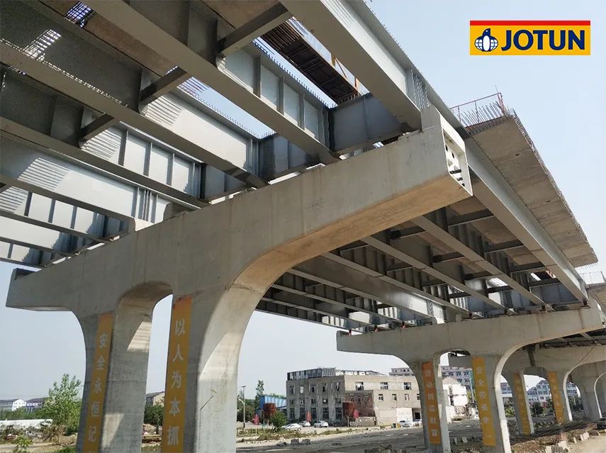 浙江臺州路澤太高架快速路項目橋梁為鋼板組合結構,全長17.5公里,全線鋼板梁共計4,200余片,是目前國內最長的鋼結構高架橋梁公路,是臺州人民期待已久的民生大通道項目。佐敦高固含品質氟碳產(chǎn)品為此項目提供保護,共約50萬平米涂裝面積。