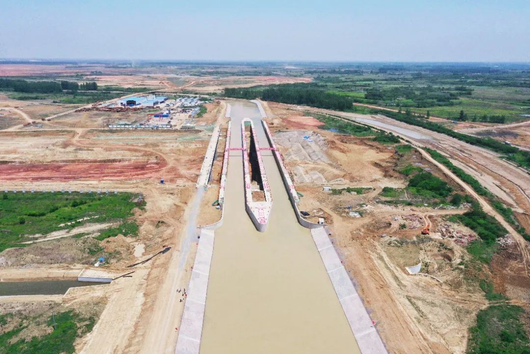 引江濟淮重難點工程-淠河總干渠鋼渡槽采用68米+110米+68米的三跨鋼結構桁架式梁拱組合設計,主跨跨度達到110米,是目前世界上跨度最大的通水通航鋼結構渡槽。2021年5月1日隨著淠河總干渠水緩緩流進引江濟淮淠河總干渠渡槽,標志著這個世界超級“水橋”正式通水并具備通航條件。