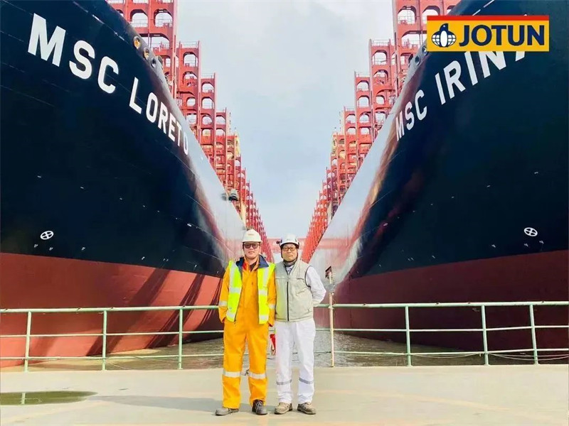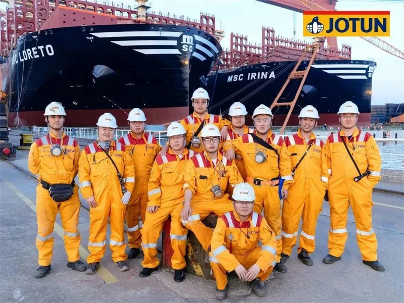 因船型巨大,佐敦為該系列船型派駐了多支由高級技術(shù)服務(wù)領(lǐng)頭的檢驗小組,HPS防污漆統(tǒng)噴時,有多達(dá)6名佐敦涂裝顧問在現(xiàn)場提供技術(shù)服務(wù)。