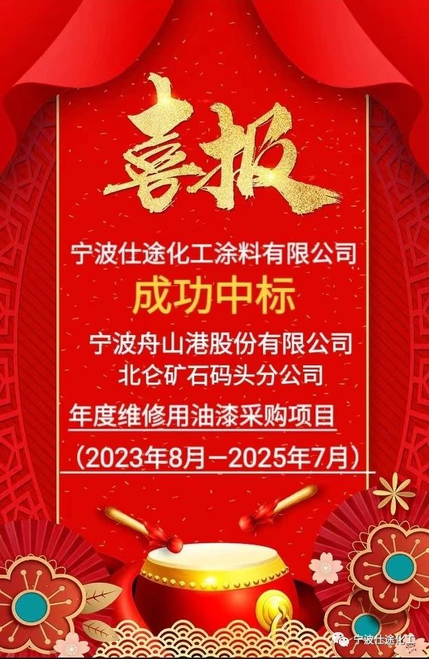 成功中標!寧波仕途化工中標舟山港北侖礦石碼頭“2023-2025年度維修油漆采購”項目公開招標!