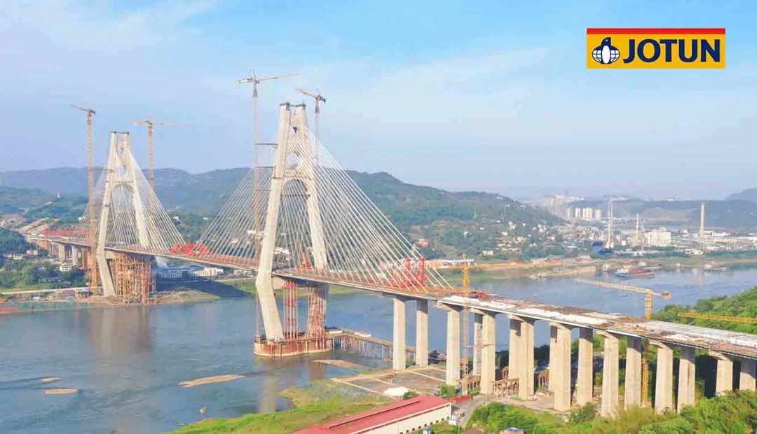 宜賓臨港長(zhǎng)江公鐵大橋位于四川省宜賓市,是國(guó)內(nèi)首座高鐵與公路平層布置斜拉橋、世界最大寬度公鐵兩用斜拉橋、世界最大跨度公鐵兩用鋼箱梁斜拉橋。2023年12月大橋正式通車(chē)。大橋采用了有優(yōu)異防腐性能和極佳柔韌性的佐敦Barrier 85環(huán)氧富鋅底漆產(chǎn)品。